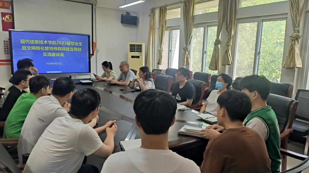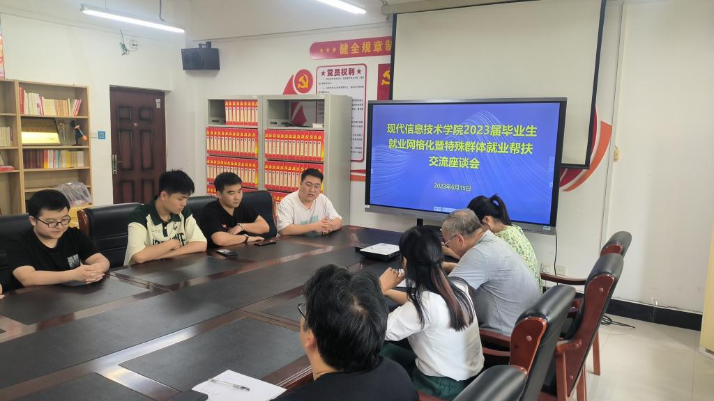 6月15日,公司召开2023届毕业生就业网格化暨特殊就业帮扶交流座谈会,本次座谈会由周翠英书记主持,孙杰副经理、大数据教研室、计算机应用教研室、虚拟教研室教师和辅导员代表参会,与到场的12名毕业生进行座谈。