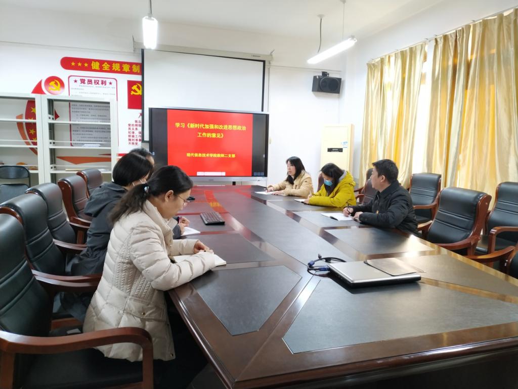 太阳集团tyc教师第二党支部于2021年12月22日下午15:00组织全体党员认真学习《新时代加强和改进思想政治工作的意见》。