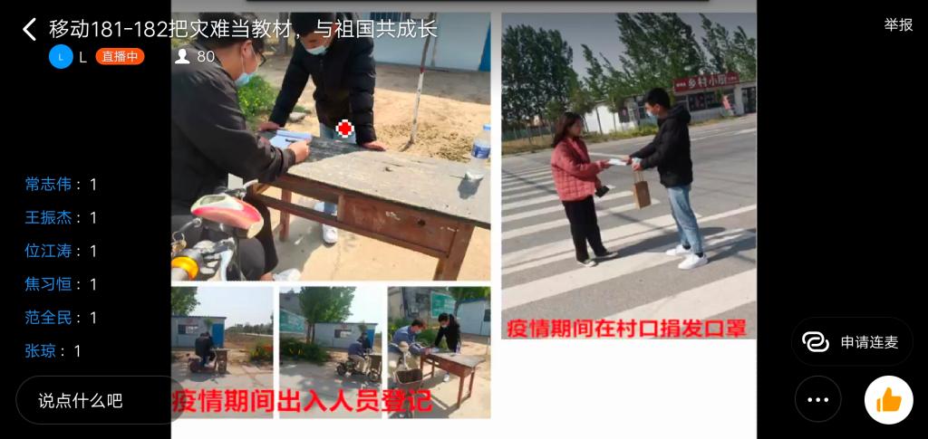 为引导广大同学把灾难当教材、把困难当磨砺,做到在灾难面前与国家共患难、与人民共进步,努力把疫情危机化为教育契机,近日,信息工程学院辅导员老师利用钉钉软件,通过视频直播方式开展了把灾难当教材 与祖国共成长”网络主题班会教育活动。
