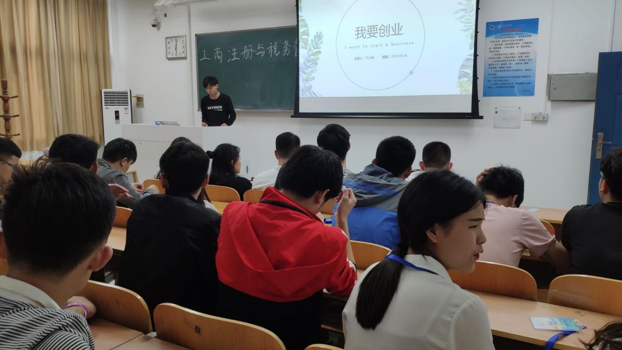 4月18日夜晚,由信息工程学院主办的《工商注册与税务管理的些坑》专题讲座在三号楼开讲。