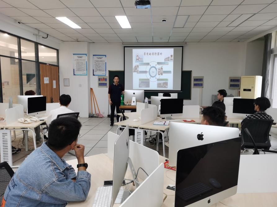 会上丁玉涛老师就实训室用电安全、防火、防盗做了详细的介绍,他提醒参与管理实训室的老师和员工一定要做到人走关灯、关窗、断电、锁门,会上丁玉涛老师还对突发火灾时如何使用灭火器进行了详细讲解。