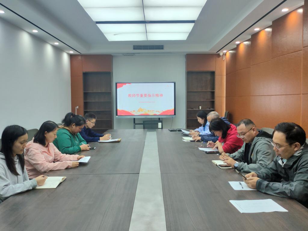 在第三十九个教师节来临之际习近平总书记给全国优秀教师代表座谈会与会教师致信,向他们和全国广大教师及教育工作者致以节日问候和诚挚祝福,充分肯定以与会教师为代表的全国广大教师的重要贡献,鲜明指出了中国特有的教育家精神的深刻内涵,对广大教师提出殷切期望,为新时代教师队伍建设指明了前进方向,提供了根本遵循。孙睿同志首先介绍了致信的内容与精神,并结合自身工作谈了在学习过程中的感想。随后,支部的其他党员同志也纷纷结合自身教学工作情况依次进行了交流、发言。支部所有教师党员均表示在今后的公司产品工作中要以习近平总书记对教育工作的重要指示精神为引领,为社会输送更多优秀的技术技能型河职学子,助力河南区域经济高质量发展。(供稿人:王泽强 审稿人:郑宝林)