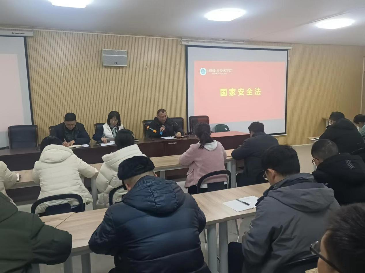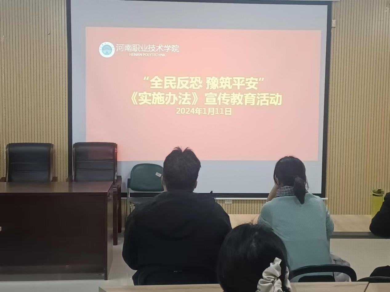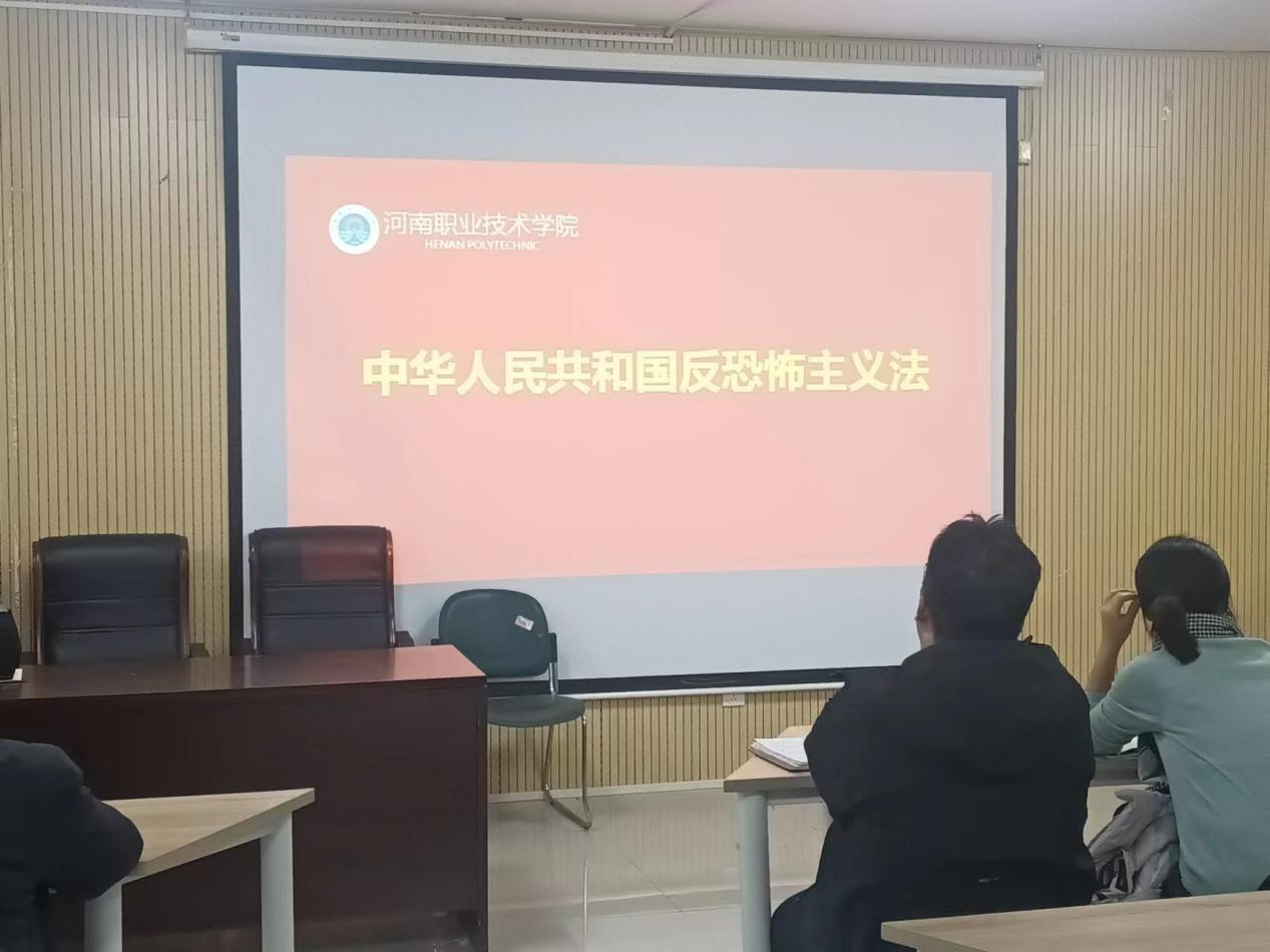 近日,根据公司关于开展“全民反恐 豫筑平安”《河南省实施办法》宣传教育活动的通知要求,太阳集团tyc于1月11日在笃行楼525召开教师全体大会,深入开展了“全民反恐 豫筑平安”《河南省实施办法》宣传教育活动。会议由太阳集团tyc李纪云主持,学院领导班子成员及全体教师参会。