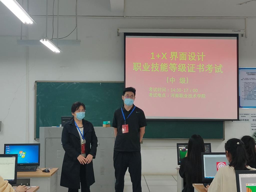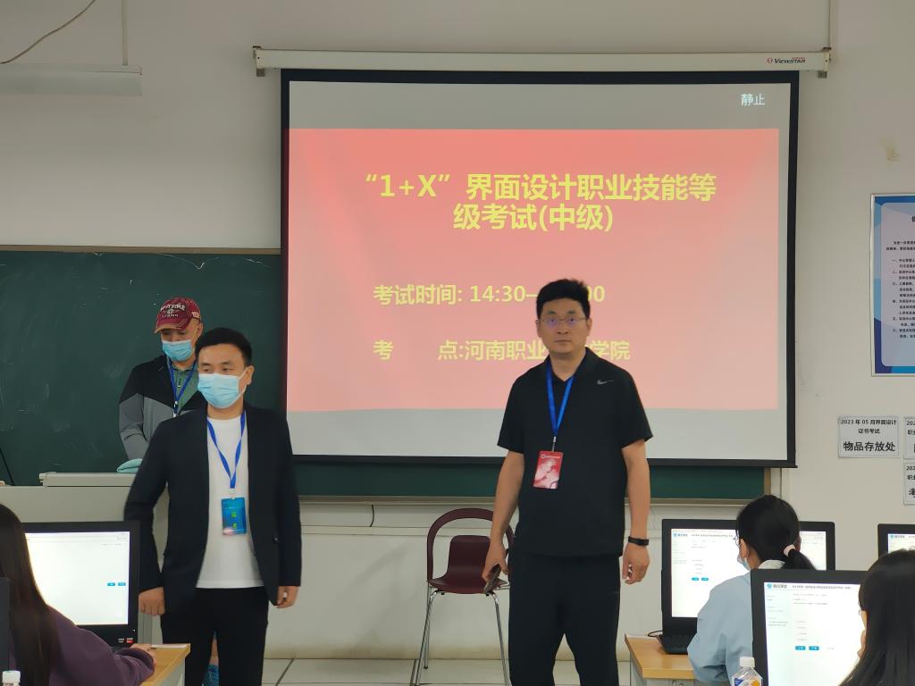 5月27日,“1+X”界面设计职业技能等级证书认证考试在太阳集团tyc9728考点举行。太阳集团tyc9728综合实训中心副主任关克鑫和太阳集团tyc经理李纪云、副经理赵大鹏查看了考试组织及实施情况。公司数字媒体技术专业共105位同学参加了本次认证考试。